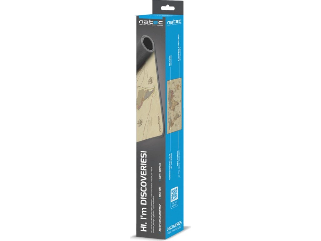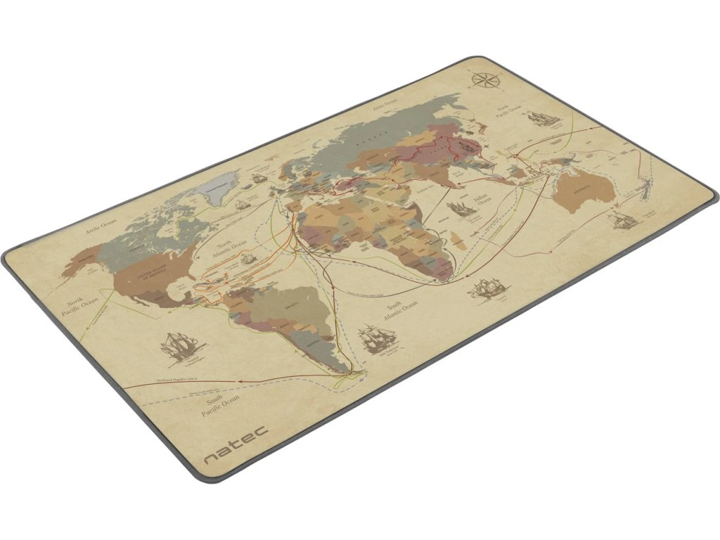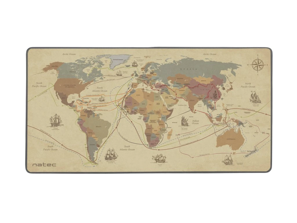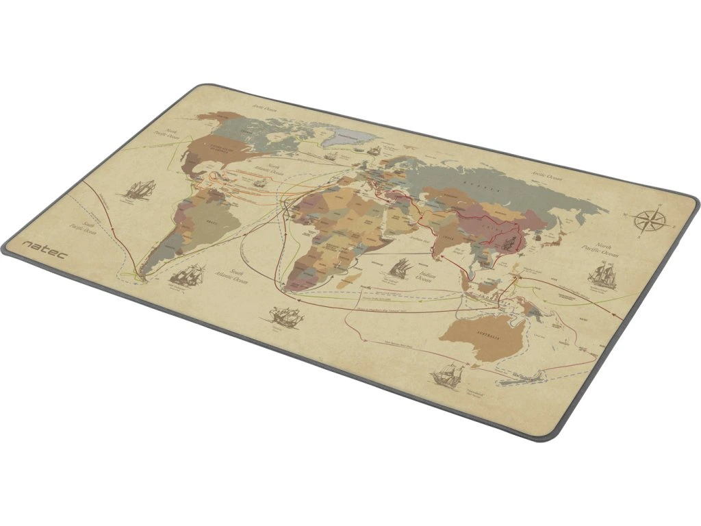 Hlavním charakteristickým rysem Natec DISCOVERIES je jedinečná grafika zobrazující polickou mapu světa spolu s hlavními expedicemi éry velkých geografických objevů. Trasy zahrnují jména průzkumníku, data jednotlivých vyprav a názvy i náčrty lodí. Navíc vkusná grafika děla podložku nejen zajímavým doplňkem na vašem pracovním stolu, ale může být užitečná také během studia, ale i při každodenním používání. Díky tomu podložka nejen usnadňuje pohyb myši, ale také pomáhá při práci, studiu, nebo zábavě.