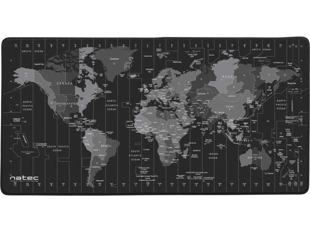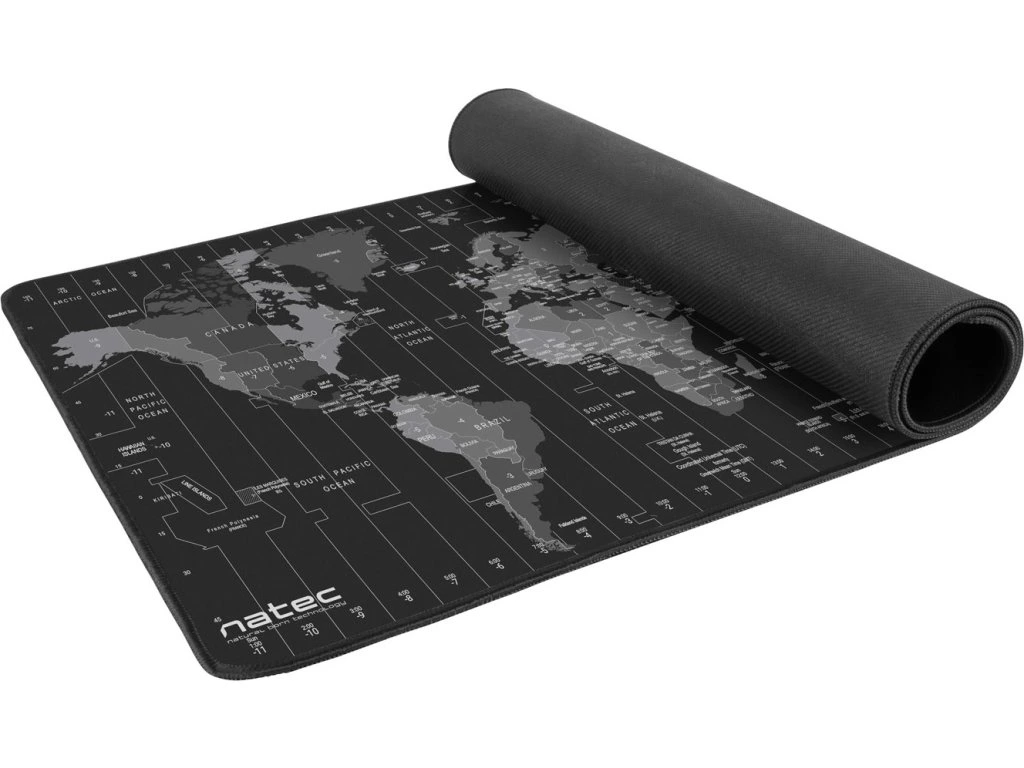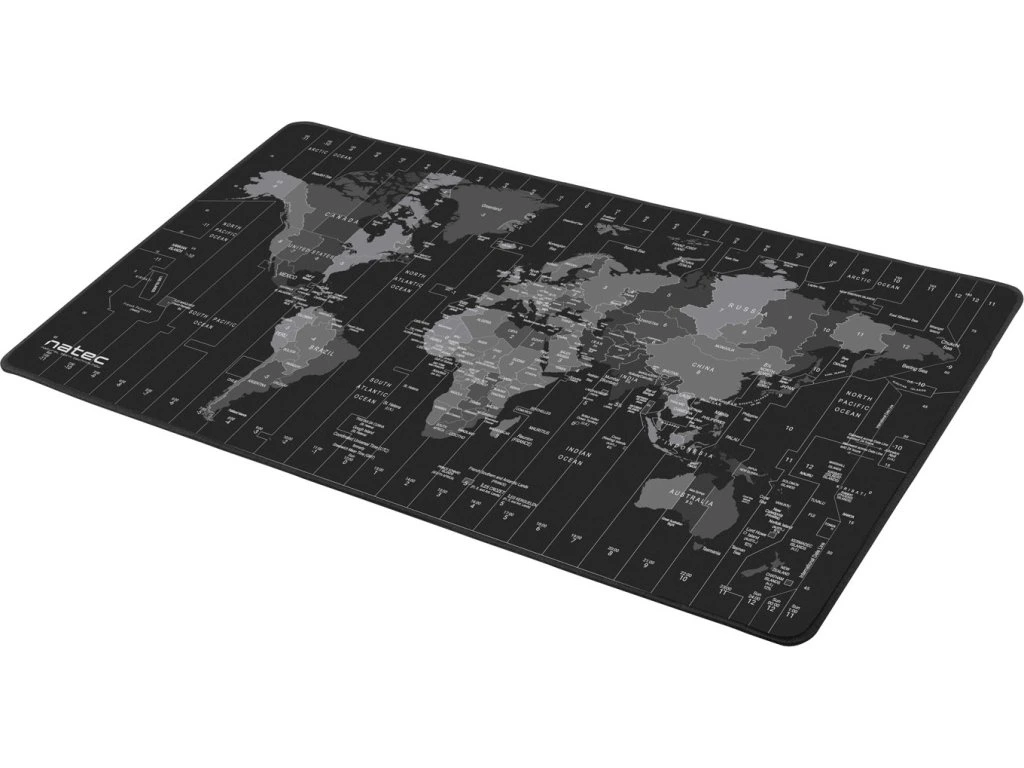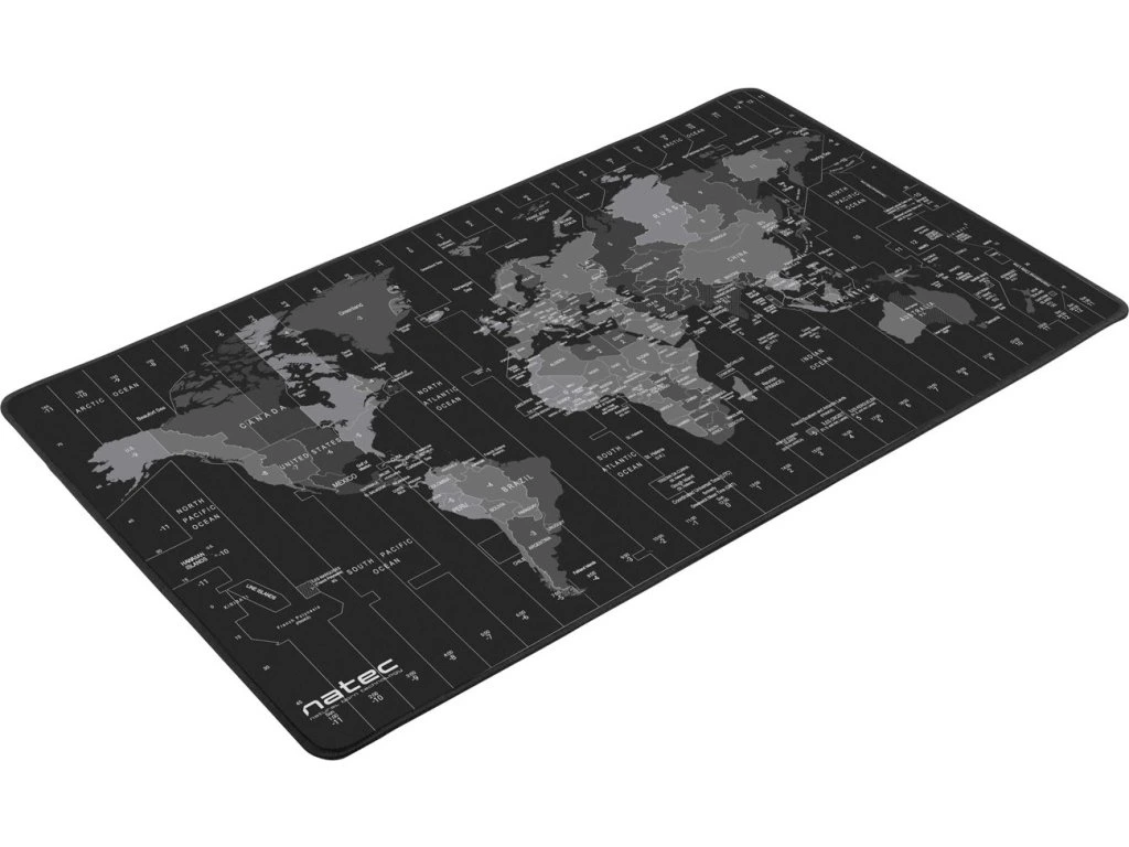 Natec Time Zone Map Maxi je unikátní podložka pod myš o maxi rozměrech 800x400 mm, na kterou se vejde nejen myš, ale i klávesnice, nebo notebook. Díky Maxi rozměrům chrání pracovní stůl před poškozením a její vysoce-kvalitní povrch a zpracování zvyšuje přesnost pohybů myši a snižuje tření mezi myší a povrchem, co ulehčuje pohyb.