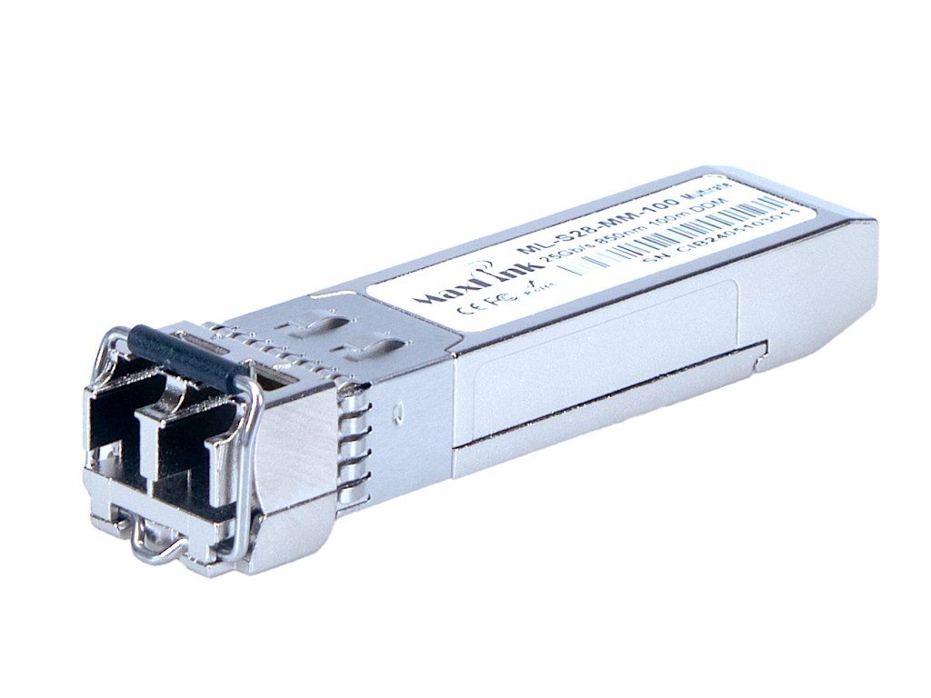 ML-S28-MM-100 je multi-mode SFP28 modul s vlnovou délkou 850nm, rychlostí 25 Gbps, 2x LC konektory a maximální vzdáleností přenosu 100m. SFP modul podporuje monitoring, neboli DDM funkci..