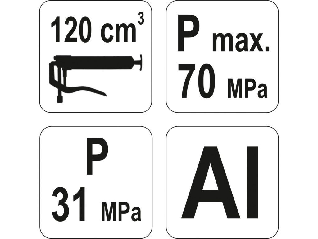 Maznice je opatřena kovovou vývodkou a dosahuje vytlačovacího tlaku 70 MPa (310bar).
