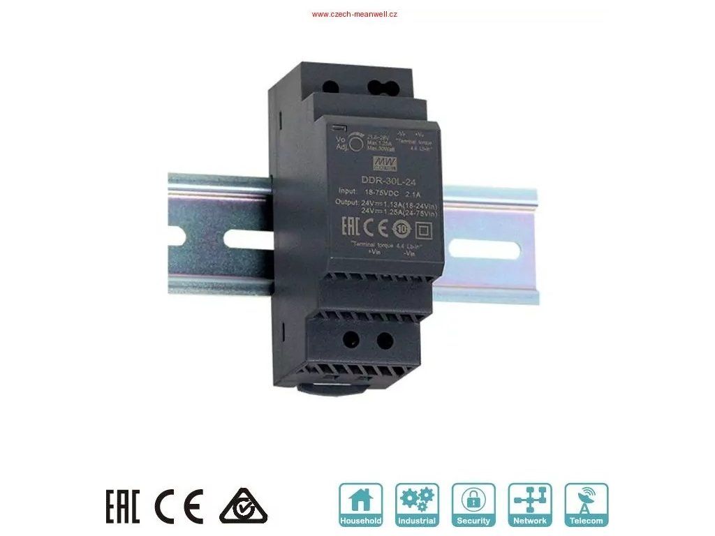 MEANWELL - DDR-30G-12 Měnič DC/DC na DIN lištu