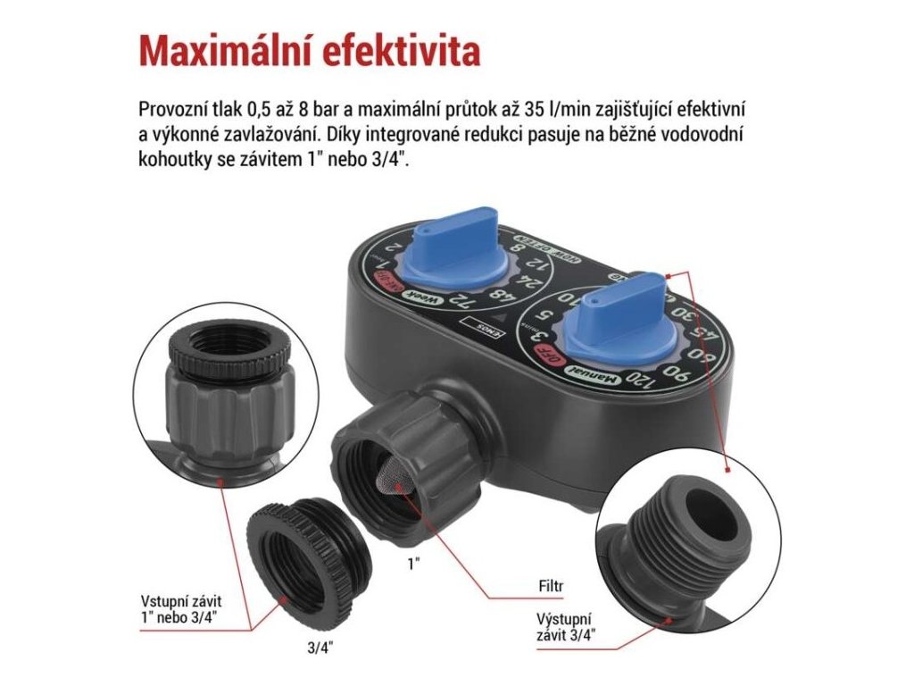 Délka zavlažování: | 3 - 5 - 10 - 15 - 20 - 30 - 45 - 60 - 90 - 120 min |