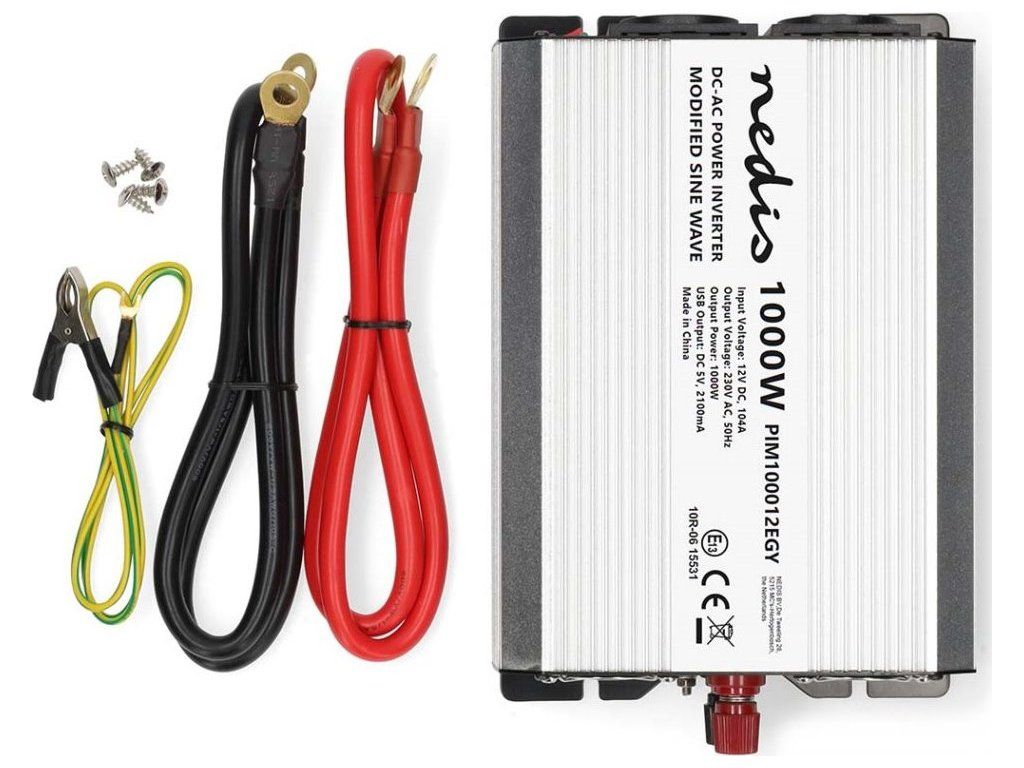 Nedis PIM100012EGYMěnič napětí s výkonem 1000 W a modifikovanou sinusoidou je ideální řešení pro napájení nejrůznějších elektrických spotřebičů určených pro síťové napájení, jako například notebooků, chladicích boxů apod. Vstupní napětí měniče je 12 V DC, výstupní napětí 230 V AC a účinnost 85 %. Takto můžete v nákladních automobilech, lodích či obytných vozech používat domácí spotřebiče, aniž byste museli investovat do speciálního vybavení pracujícího s napětím 12 V. Není vhodný pro napájení elektroniky citlivé na tvar vstupního napětí. Měnič je vybaven dvěma napájecími zásuvkami se zemnicím kolíkem (typ E) a jedním USB portem s výstupním napětím 5 V DC. Samozřejmostí je ochrana proti přehřátí, přetížení, zkratu, přepólování (pojistka), podpětí a přepětí. Součástí balení jsou kabely s očky pro připojení k baterii.