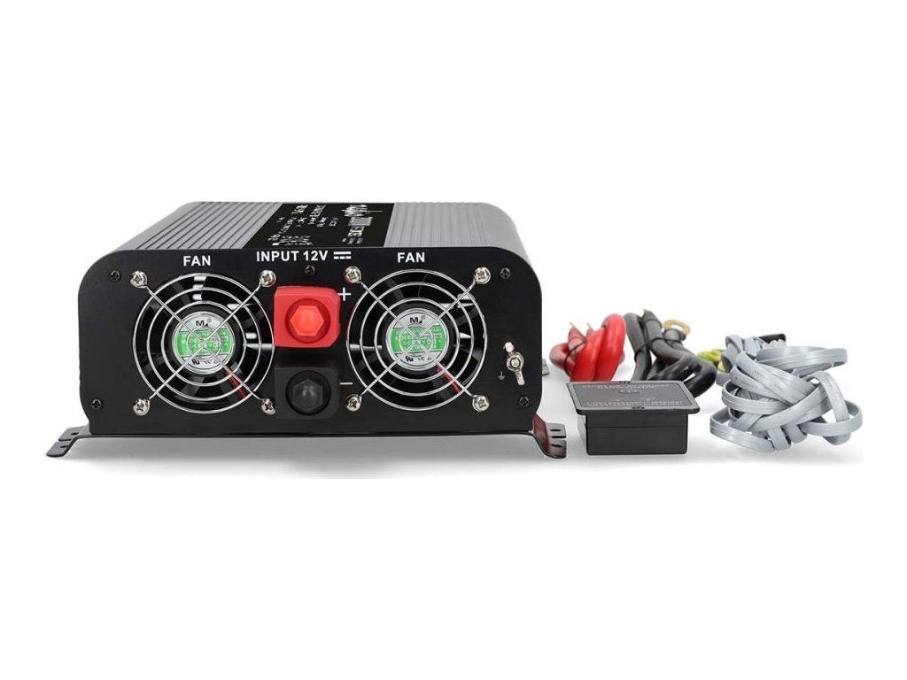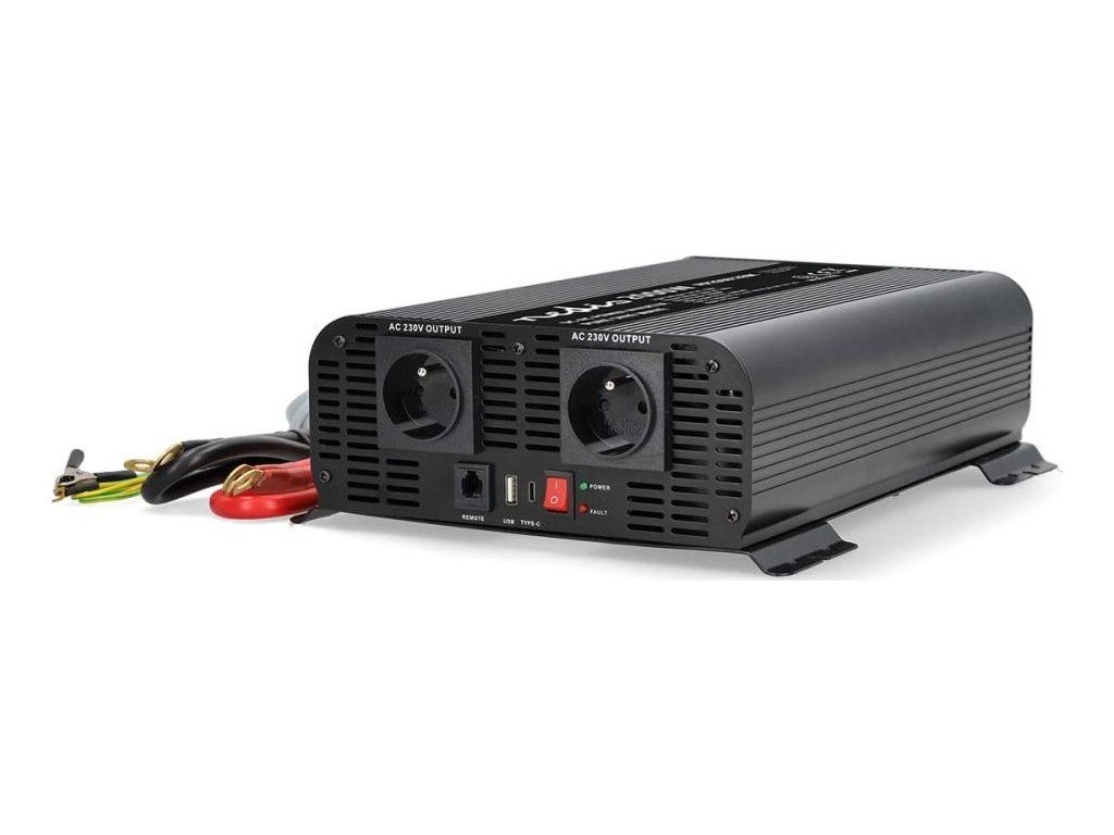 Měnič Napětí s Čistou Sinusoidou | Vstupní napětí: 12 V DC | Výstupní napájecí konektor(y): Type E (CEE 7/5) / USB-A / USB-C ™ | 230 V AC 50 Hz | 2000 W | Špičkový výstupní výkon: 4000 W | Svorkovnice | Čistá sinusová vlna | Pojistka | Černá