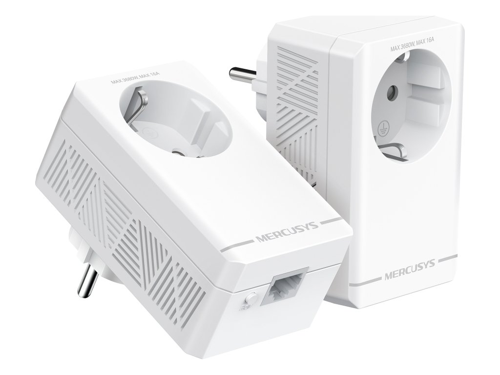Sada Mercusys MP500P KIT obsahuje dva powerline adaptéry využívající technologii HomePlug AV2, která umožňuje přenos dat rychlostí až 1000 Mb/s na vzdálenost až 300 metrů po elektrických rozvodech. Každý adaptér je vybaven gigabitovým Ethernet portem pro připojení zařízení vyžadujících stabilní a rychlé internetové připojení, jako jsou počítače, herní konzole nebo IPTV.