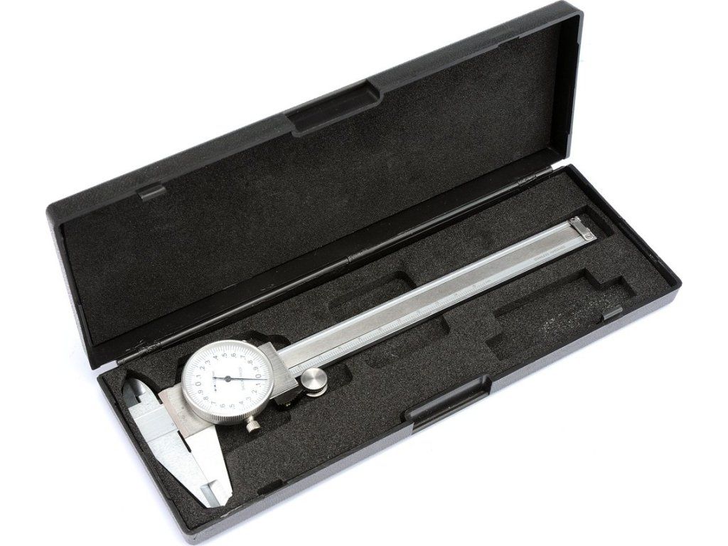 Posuvné měřítko vyrobeno z nerezové oceli s analogovým odečtem.