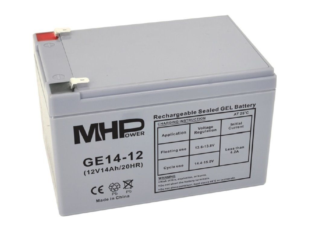 MHPower GE14-12 Gelový akumulátor 12V/14Ah, Faston F2 - 6,3mm, Deep Cycle