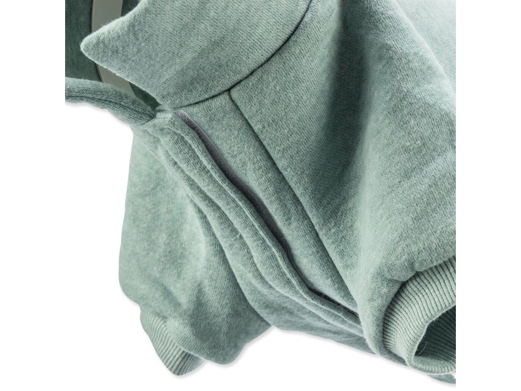Zapínání na suchý zip v oblasti hrudníku a břicha umožňuje snadné oblékání i svlékání – bez zvedání tlapek a bez stresu. Mátově zelená barva dodává mikině svěží vzhled, který bude vašemu pejskovi slušet doma i venku.