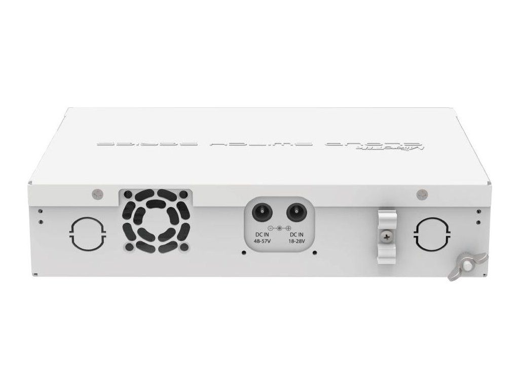 Součástí RouterBoardu je MikroTik RouterOS v5. Switch podporuje PoE výstup standardu 802.3af/at, lze tak napájet další zařízení jako jsou IP telefony, kamery apod. Podmínkou je mít připojený 48V zdroj. Switch má dva vstupy pro napájení, jeden pro pasivní napájení (zdroje 18-28 V) a druhý pro aktivní (48-57 V). Pokud jsou zapojený oba zdroje zároveň, lze porty přepínat mezi aktivním i pasivním napájením, popř. nechat režim auto, který to sám detekuje.