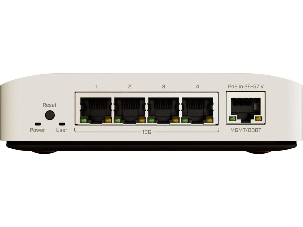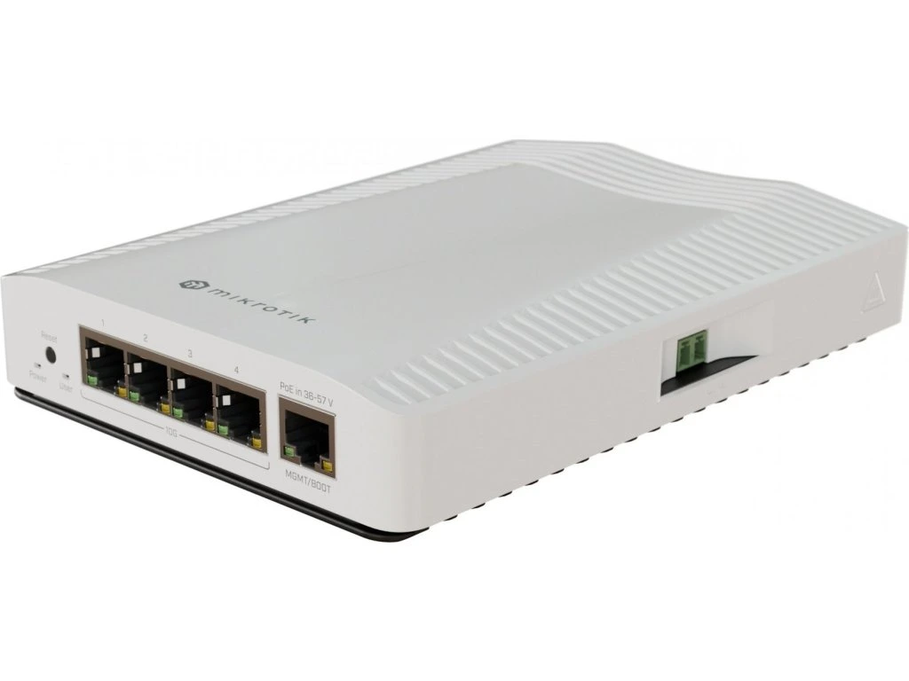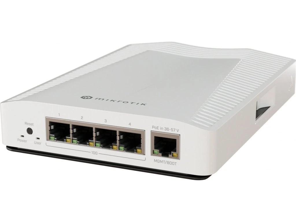 MikroTik CRS304-4XG-INCloud Router Switch CRS304-4XG-IN je dodáván v odolném, lehkém krytu a nabízí 4× 10GbE RJ-45 a 1× 1GbE RJ-45 port, fanless provedení. Disponuje procesorem ARM 64bit s přepínacím čipem Marvell Prestera (98DX2528), 512 MB RAM a 32 MB FLASH úložištěm. Nabízí funkce jako přesměrování portů, broadcast storm control, filtrování MAC, VLAN, zrcadlení provozu, omezení šírky pásma, L3 hardware offloading. Switch má zálohu napájení (dva zdroje). Poskytuje čtyři různé možnosti napájení: dva DC konektory (12–57 V), 2pinovou svorkovnici (12–57 V) a PoE-in. Přepínač automaticky vybírá zdroj napájení s nejvyšším napětím, čímž zajišťuje nepřerušovaný provoz. Podporuje jak pasivní (36–57 V), tak i aktivní (802.3at/af) PoE napájení. Součástí balení je adaptér pro montáž na DIN lištu a napájecí zdroj (48 V/ 0,95 A).