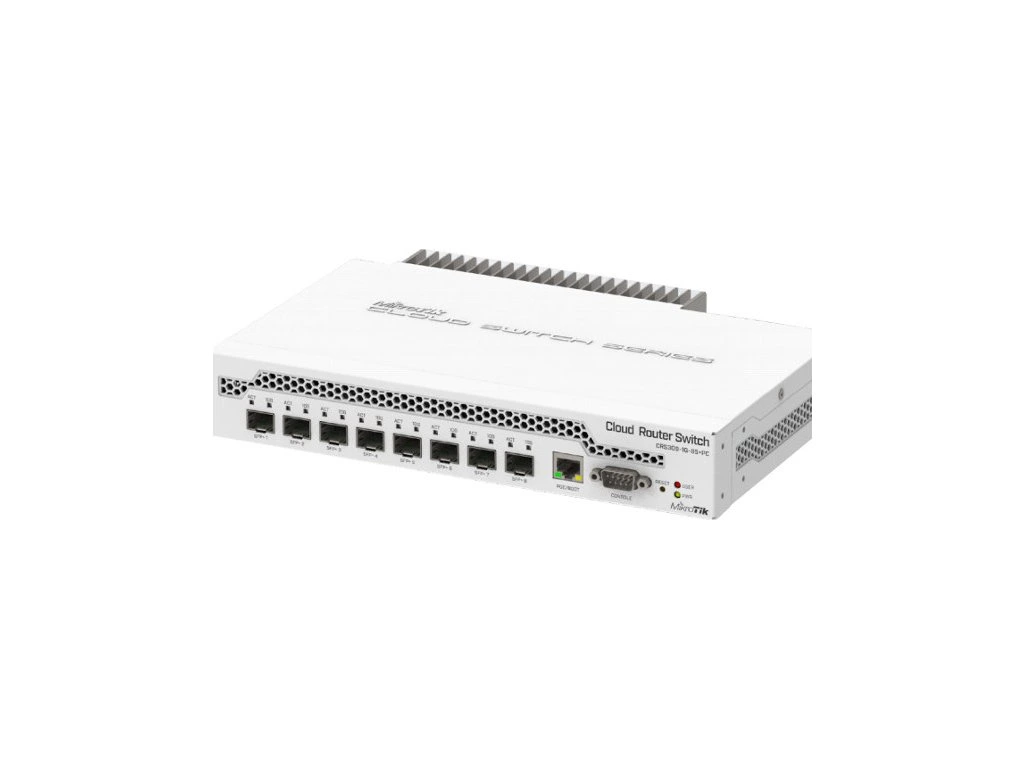 MikroTik CRS309-1G-8S+INCloud Router Switch CRS309-1G-8S+ je dodáván v kovovém indoor case a nabízí 8x SFP+ a 1x Gbit port. Switch podporuje pasivní (18-57V) i aktivní PoE vstup (802.3af/at).