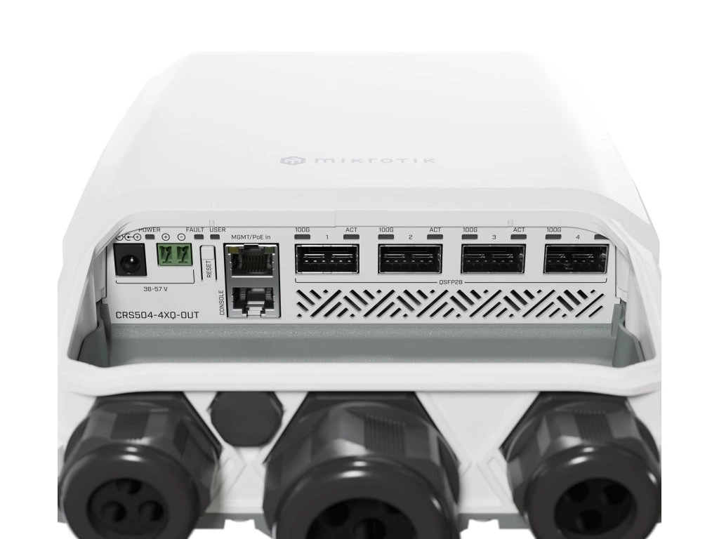 MikroTik Cloud Router Switch CRS504-4XQ-OUTVenkovní (outdoor) Cloud Router Switch se čtyřmi 100G QSFP28 a jedním RJ-45 Ethernet portem + 1x RJ-45 konzole. Switch poskytuje 100Gigabitové optické spojení, a je tak ideálním řešením jak pro poskytovatele internetu, tak i pro firmy či datová centra.