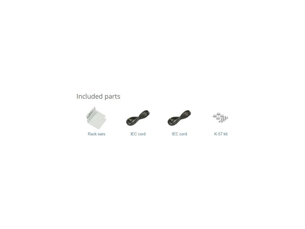 Balení obsahuje: Cloud Core Router CCR2004-16G-2S+ určený pro montáž do racku (1U), dva napájecí kabely a rackmount kit.