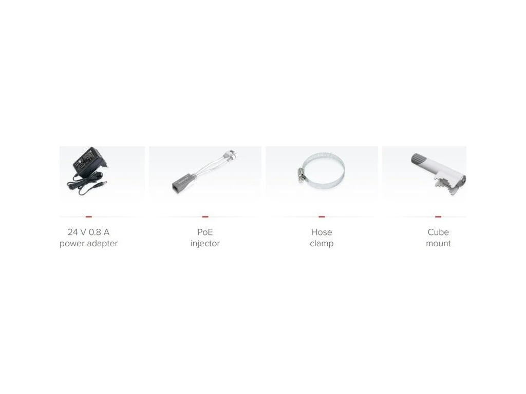 Součástí jednotky je předinstalovaná licence RouterOS MikroTik L4. Tato licence je plně dostačující pro vytvoření spoje "Point to Point" (bod-bod). Jednotka má integrovaný PoE splitter, lze ji tedy napájet přímo po F/UTP kabelu (PoE+ 802.3af/at).