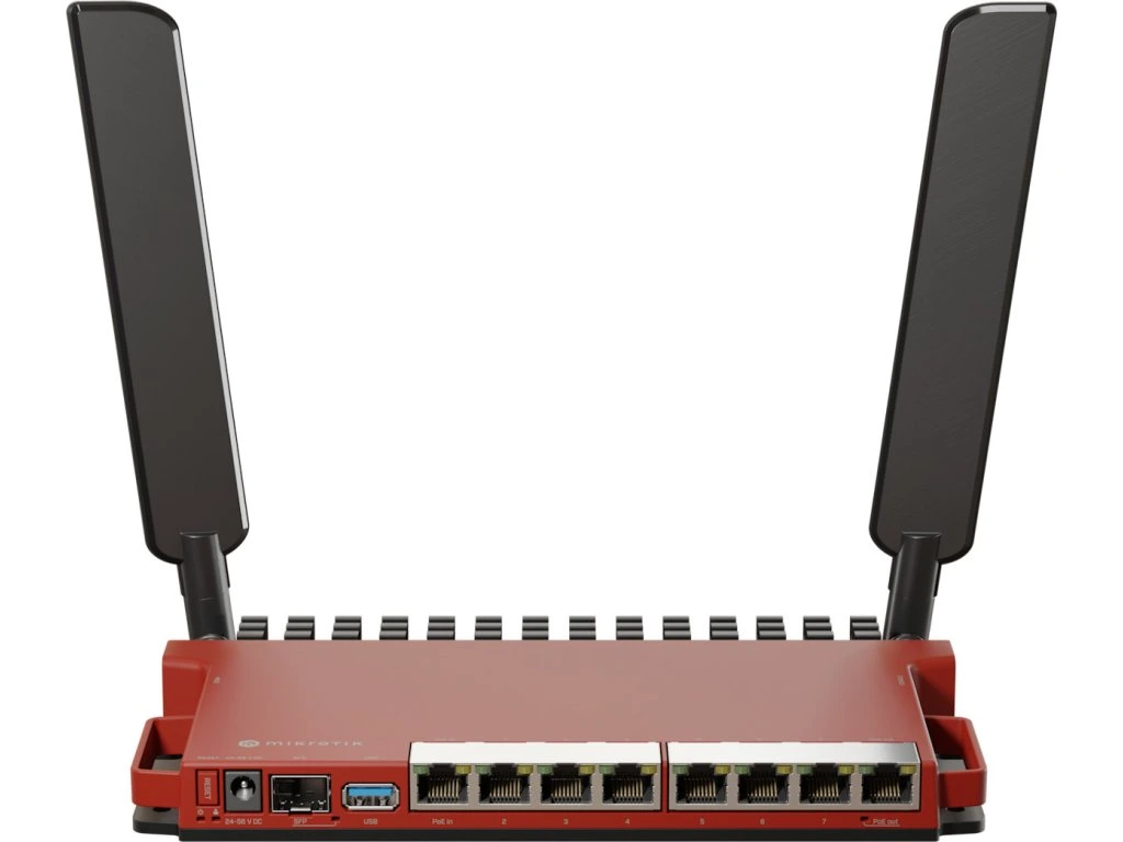 MikroTik L009UiGS-2HaxD-INKompaktní a výkonný router s redundantním napájením (DC jack & PoE) a Wi-Fi 6 pro náročné uživatele. Router je vybaven 2jádrovým ARM Qualcomm CPU (IPQ-5018), 512 MB RAM paměti DDR3L, 128 MB NAND paměti, osmi GbE porty a SFP slotem s podporou 2.5G připojení. Router podporuje aktivní PoE+ napájení 802.3af/at (24-56 V) na 1. portu.