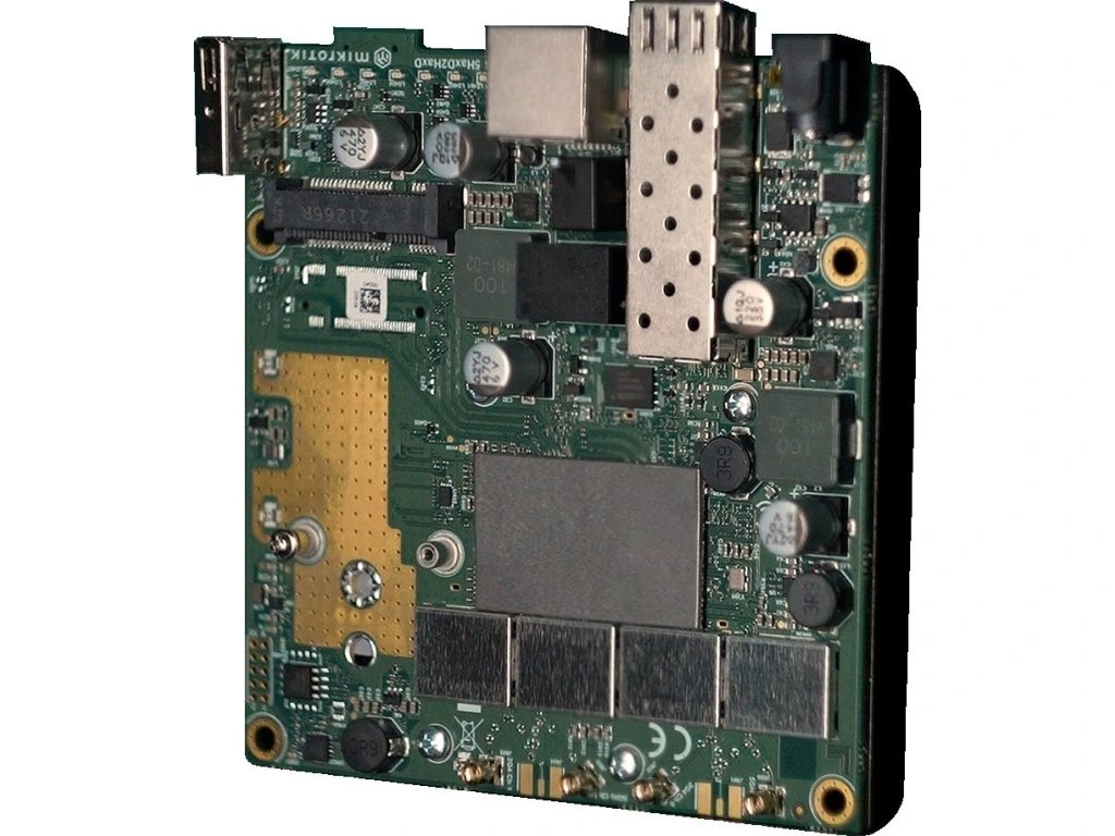 MikroTik L23UGSR-5HaxD2HaxDMikroTik L23UGSR-5HaxD2HaxD je výkonná deska pro AP/CPE/PtP instalaci s 2,4 GHz/ 5 GHz Wi-Fi 6 (802.11ax). Zařízení je vybaveno čtyřmi konektory MMCX. Můžete přidat HGO-OUT anténu a máte skvělý všesměrový Acess Point nebo anténu mANT30 PA pro vytvoření výkonného PtP spojení na dlouhé vzdálenosti. Disponuje moderním procesorem Qualcomm Maple založeným na architektuře ARM, 256 MB paměti RAM, USB portem pro dodatečné úložiště nebo jiné potřeby, Gigabit Ethernet portem s podporou PoE (Power over Ethernet), 2,5Gb SFP portem pro optické připojení a volným slotem miniPCIe, který umožňuje další přizpůsobení. Lze tak například přidat modem LTE pro záložní mobilní internet – k dispozici je NanoSIM slot na spodní straně desky.