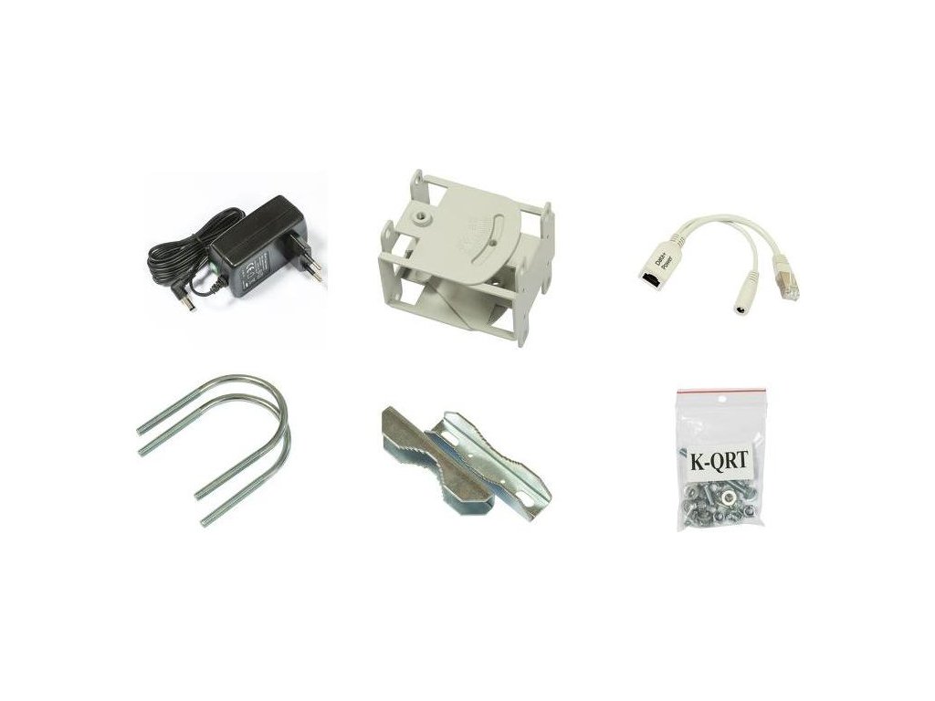 • QRT wireless device, precision mounting bracket, U bolts, pole clamp, screw kit, 24V 0.8A power adapter, Gigabit PoE injector