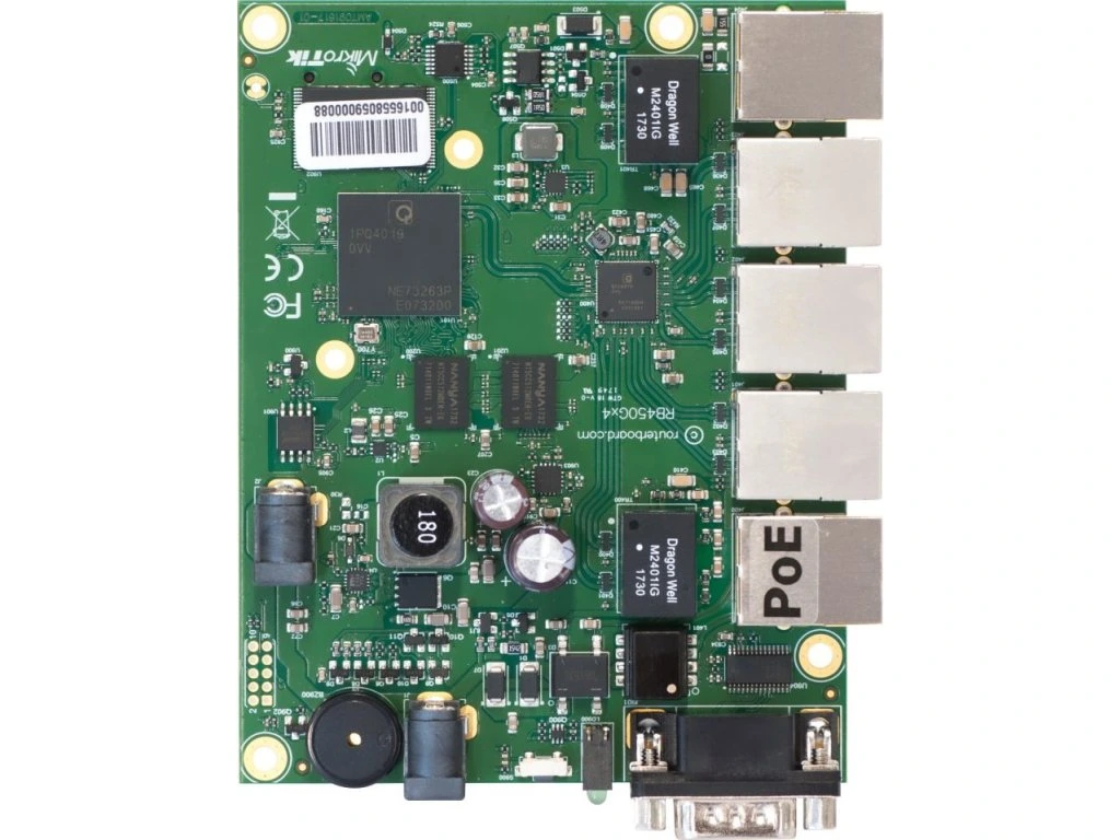 MikroTik RouterBOARD RB450Gx4, 1 GB RAM, IPQ-4019 (716 MHz), 5× GbE, 802.3af/at, licence L5