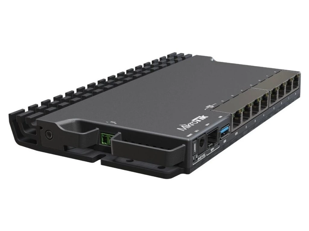 MikroTik RB5009UG+S+INKompaktní a výkonný RouterBoard s redundantním napájením (DC jack + 2pin) pro náročné uživatele. Router je vybaven 4jádrovým Marvell Armada ARMv8 Amethyst CPU (1,4 GHz), 1 GB RAM paměti DDR4, 1 GB NAND paměti, sedmi GbE porty, jedním 2.5G portem a 10G SFP+ slotem. RouterBoard podporuje aktivní PoE+ napájení 802.3af/at (24-57 V).