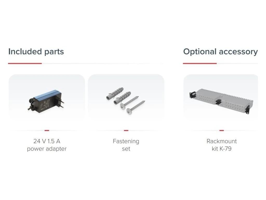 - 3 způsoby napájení (PoE+ 802.3af/at, DC jack, 2pin svorkovnice)