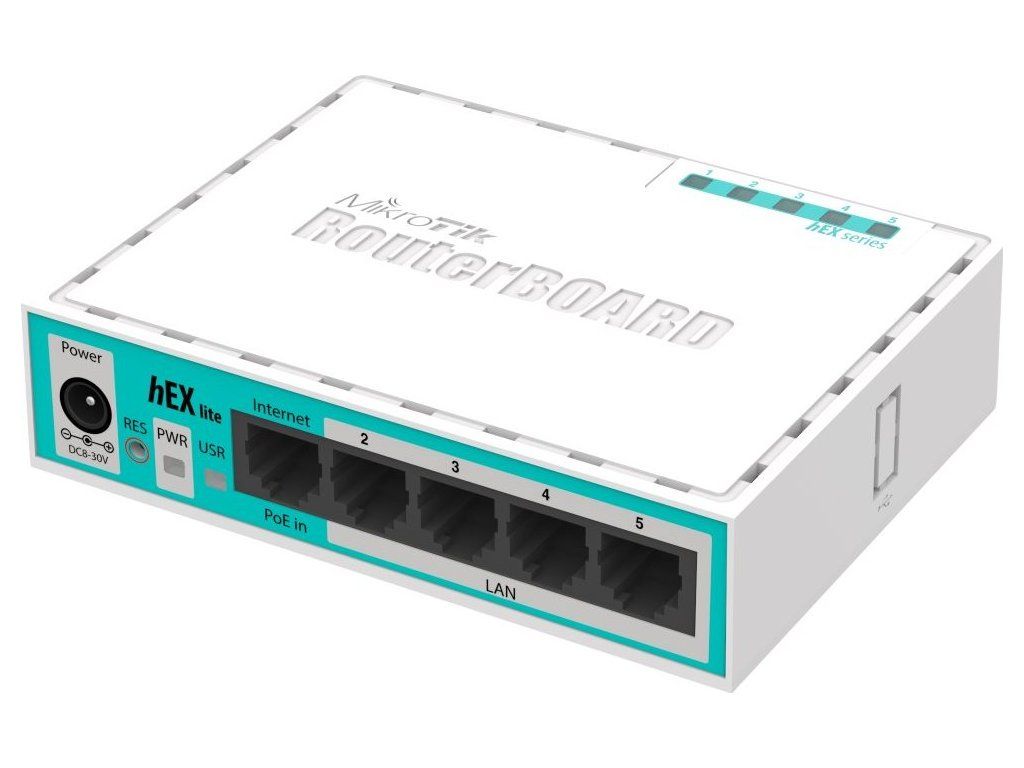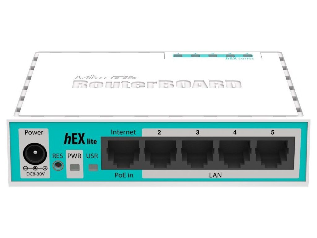 MikroTik hEX liteMikroTik RB750r2 řady hEX lite je nástupcem oblíbeného RouterBoardu RB750. Oproti předchozímu modelu má rychlejší procesor, novější verzi BIOSu a dodává se včetně plastového krytu a zdroje. Velkou výhodou routeru je nízká spotřeba, která je pouhé 2 W. Je vybaven operačním systémem RouterOS L4 se všemi funkcemi, firewallem, řízením přístupu uživatelů mnoho dalšími funkcemi k nastavení systému.