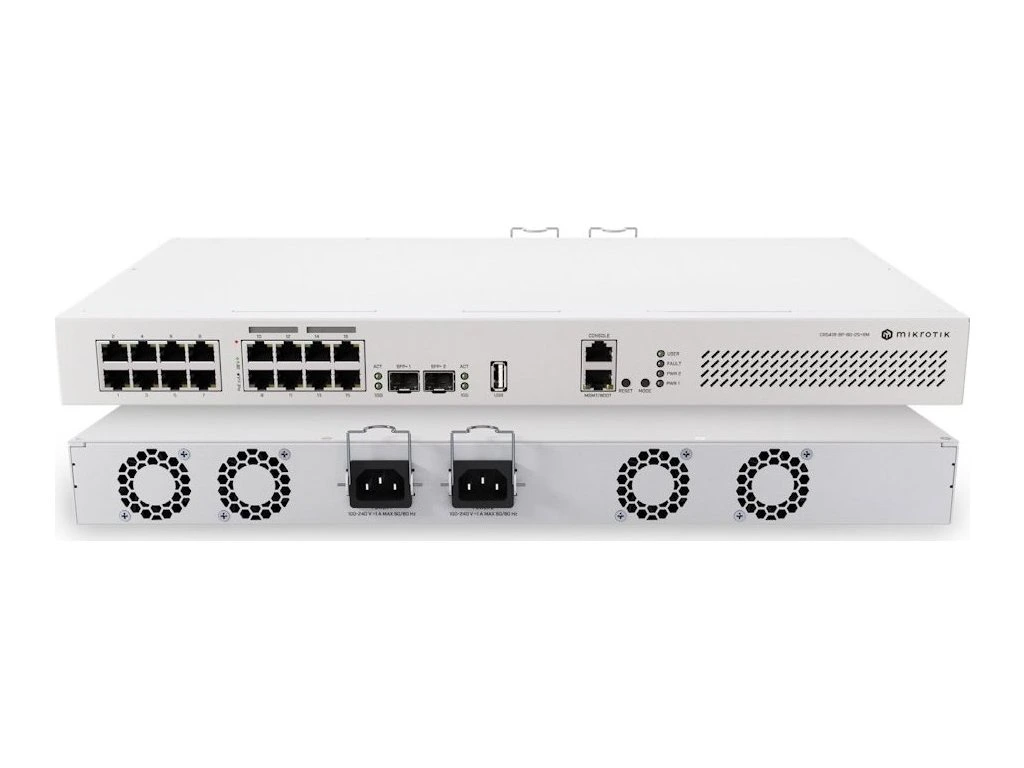 CRS418-8P-8G-2S+RM je ideální pro hybridní síťová prostředí Layer 2/3, ať už segmentujete síť pomocí VLAN nebo směrujete provoz mezi nimi. Díky výkonnému procesoru může nahradit běžné kancelářské routery a fungovat jako internetová brána, firewall nebo dokonce jako CAPsMAN kontroler pro správu přístupových bodů.