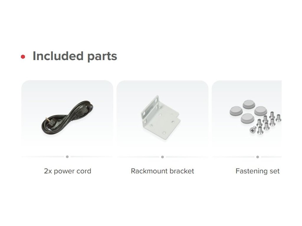 Obsah balení: 2× napájecí kabel, rackmount držák, montážní sada