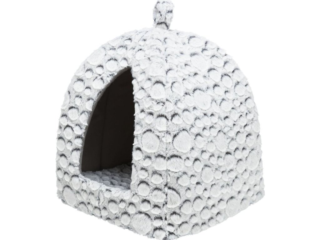 MILA plyšová jeskyně s polštářem, 32 × 42 × 32 cm, bílá/šedá