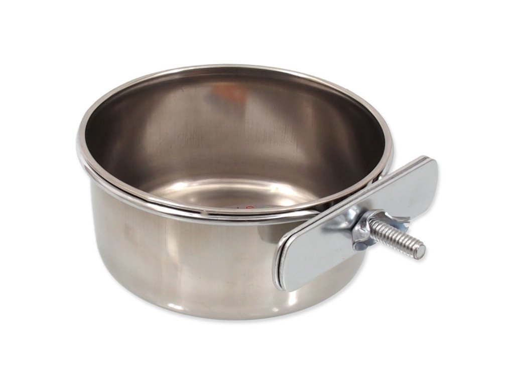 Nerezová šroubovací miska pro hlodavce a ptactvo.