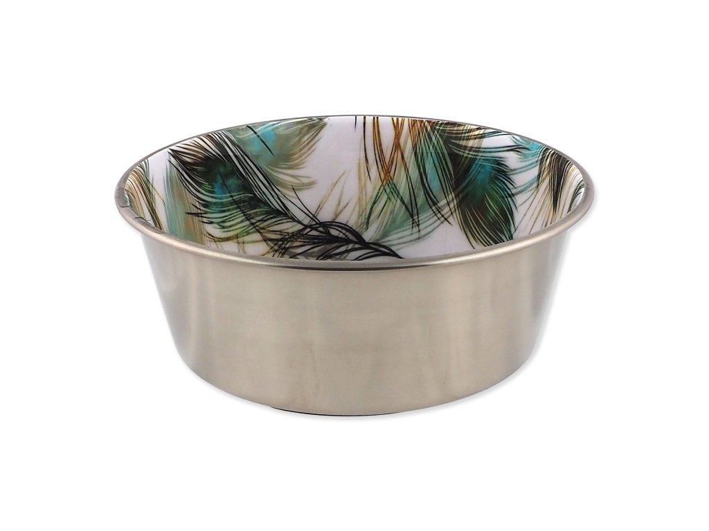 Kvalitní nerezová miska s originálním dekorem na vnitřní straně. Spojuje odolnost a snadnou údržbu s elegantním vzhledem, který zaujme na první pohled. Ideální pro každodenní podávání krmiva i vody psům různých velikostí.