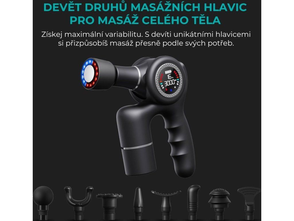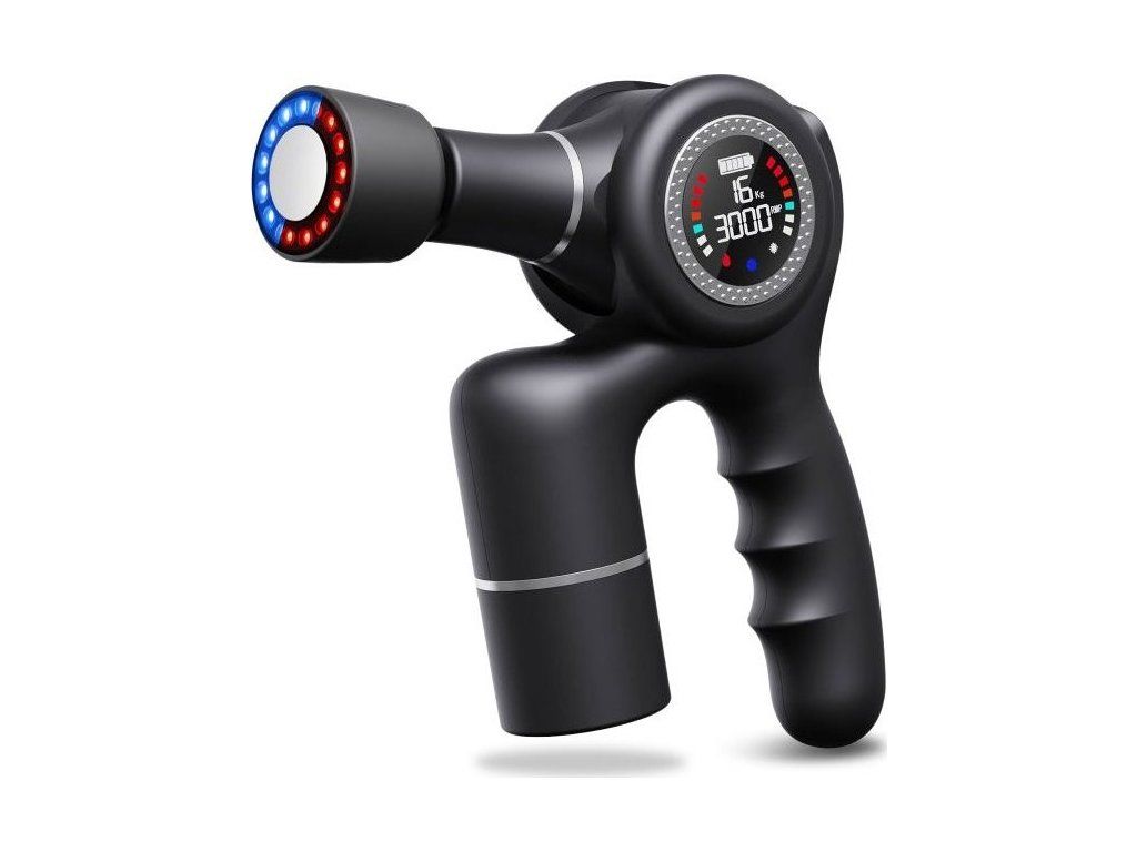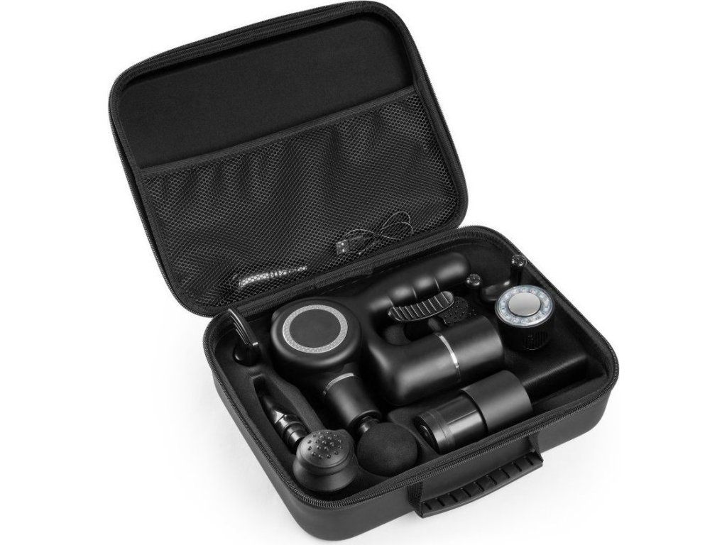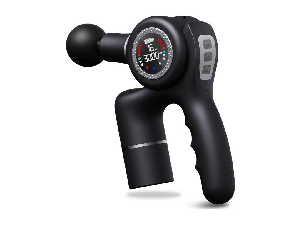 Ruční masážní zařízení aplikuje koncentrované tlakové pulsy hluboko do svalové tkáně. Tyto pulsy eliminují svalové uzly, pomáhají uvolnit svaly, zlepšovat krevní oběh a zvyšovat rozsah pohybu. Správné použití masážní pistole může rychle zkrátit dobu regenerace po výkonu a zároveň snížit napětí a případnou bolest svalů. Na výběr je z devíti vyměnitelných hlavic a rychlosti v rozsahu 1600 až 3000 úderů za minutu. O napájení se starají dvě vyměnitelné dobíjecí baterie s celkovou kapacitou 2× 2000 mAh, které zajistí až 24 hodin provozu (12 hodin/ baterii).