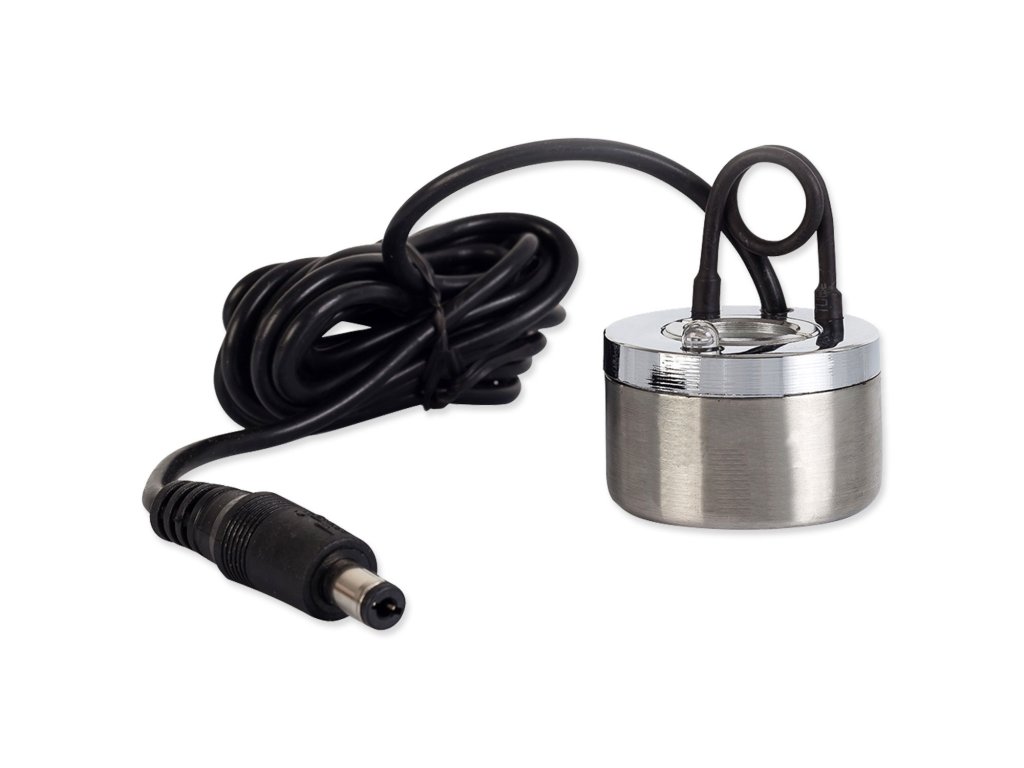 2. Připojte napájecí kabel mlhovače k transformátoru. Kabel od transformátoru zapojte do elektrické zásuvky. Mlhovač začne vytvářet vodní mlhu. Zároveň se rozsvítí LED dioda.