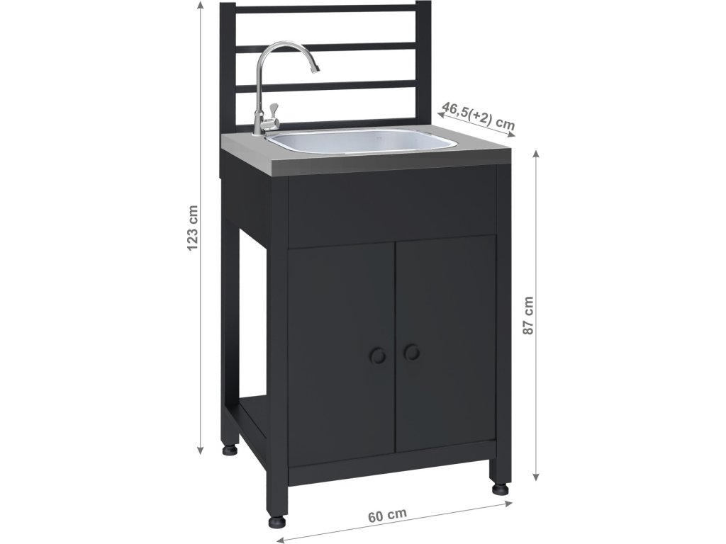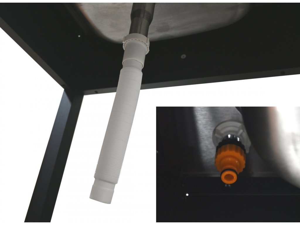 Součástí tohoto modulu je dřez s vnitřními rozměry 39 x 34,5 cm a hloubkou 15,5 cm. Dřez je spolu s vodovodním kohoutkem výborným pomocníkem při grilování. Vodovodní baterie je zakončena 1" vnějším závitem, na který je možné nasadit přiložený adaptér 3/4" pro zahradní hadici opatřenou rychlospojkou. Dřezová výpusť je ze spodní strany opatřena vývodem pro odtok vody z dřezu, vývod je možné směřovat např. do kbelíku, nebo ji lze vhodným způsobem připojit k běžnému odpadu.