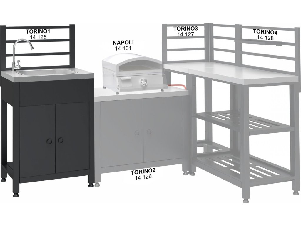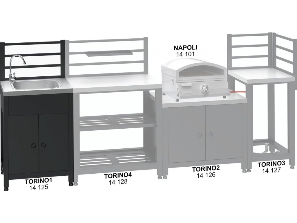 Systém TORINO dohromady tvoří ideální venkovní kuchyň pro pohodlné grilování a zpříjemnění pobytu na zahradě.