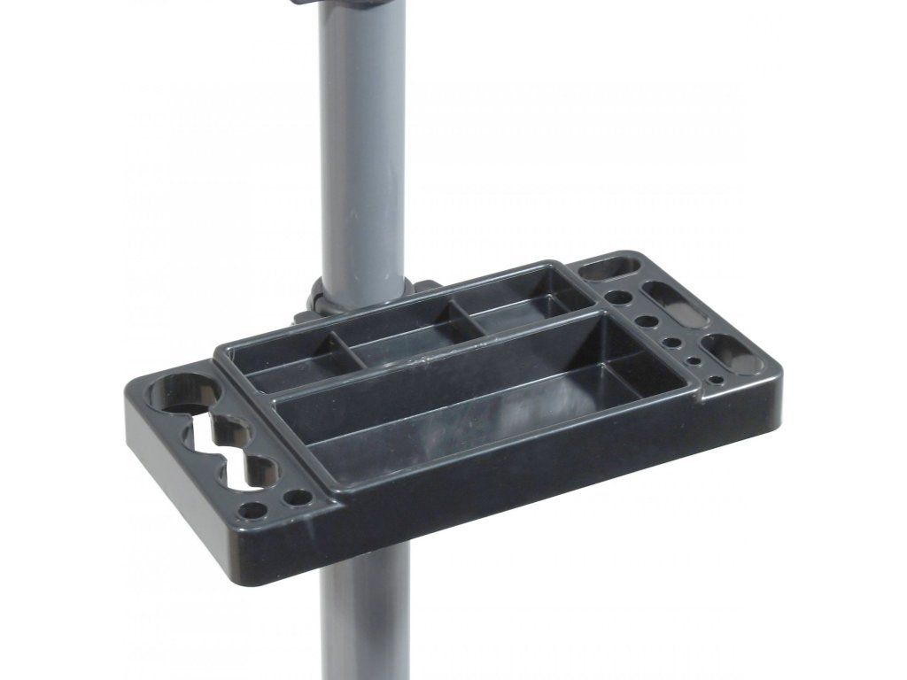 Stojan je doplněn o odkládací prostor na nářadí a případné drobné součásti.