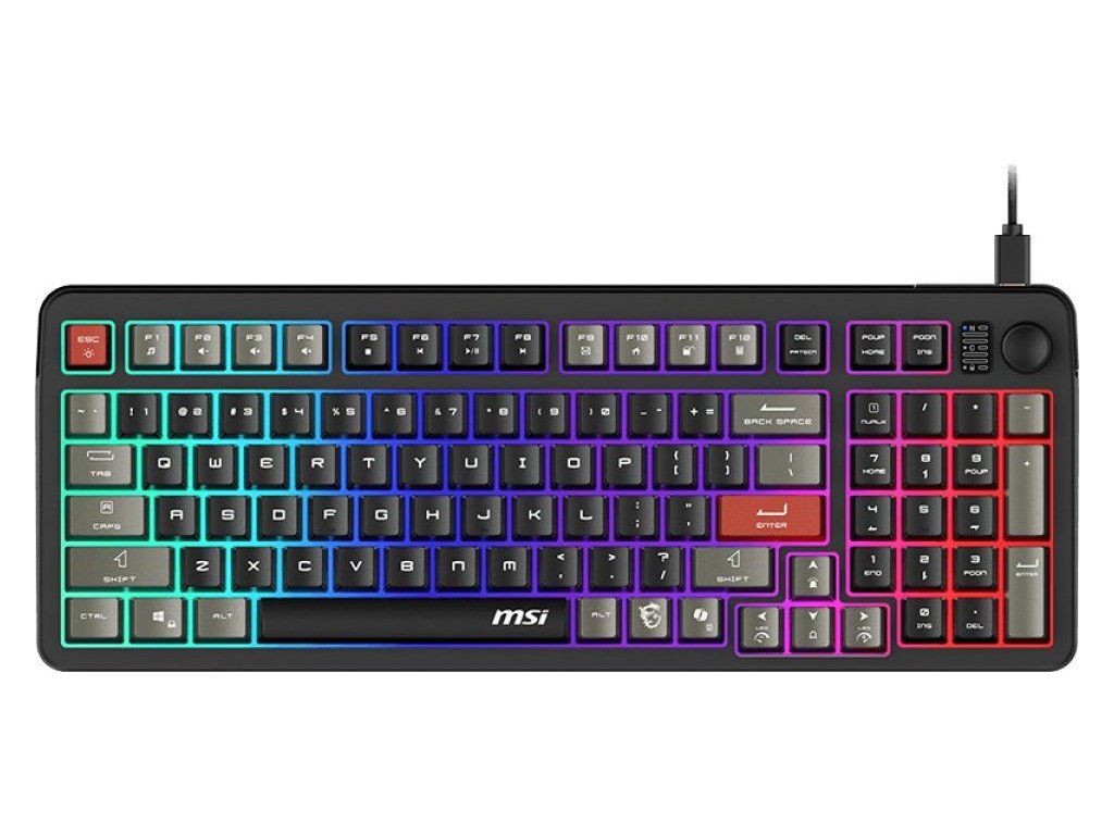 RGB podsvícení je přizpůsobitelné, takže vytvoříte atmosféru podle své nálady nebo typu hry. Ergonomická konstrukce umožňuje nastavit sklon ve 3 polohách a získat ideální polohu pro vaše zápěstí, ať už hrajete, nebo píšete seminární práci. Klávesnice MSI FORGE GK110 obsahuje také vyhrazené kolečko pro nastavení hlasitosti. S jeho pomocí rychle a citlivě upravíte intenzitu zvuku.