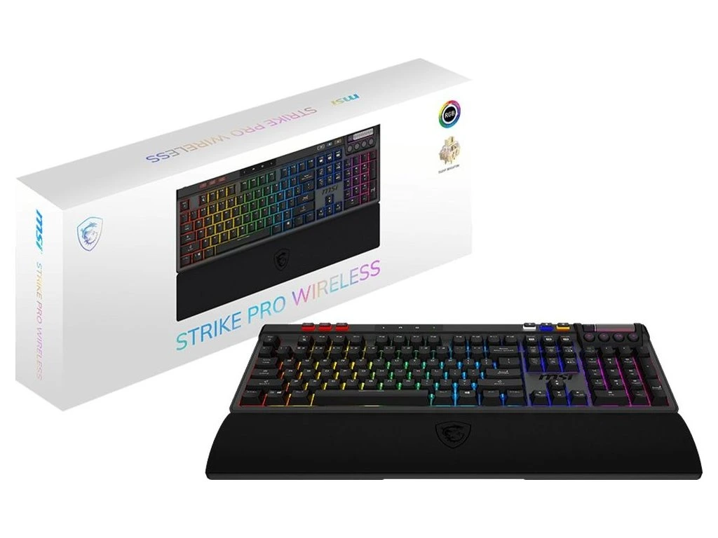 MSI herní klávesnice STRIKE PRO Wireless Silent/ bezdrátová 2,4GHz+BT/ mechanická/ RGB/ USB/ předložka/ CZ+SK layout