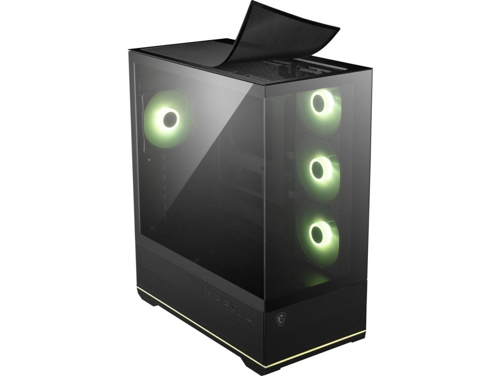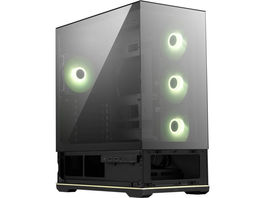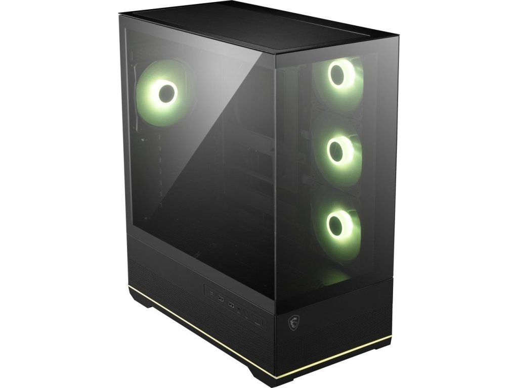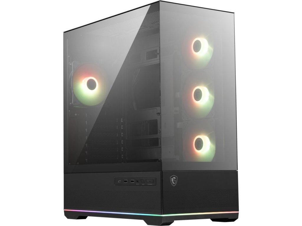 Počítačová skříň MSI MAG PANO 110R PZ vám umožní výkon PC systému doslova vidět. Disponuje průhlednými bočnicemi, které vytvářejí úchvatný 270° panoramatickým designem. Díky takovému výhledu budou vaše PC komponenty jako na výstavce. K tomu přidává také funkčně řešení vnitřní prostor, který nabízí řadu možností, jak složit výkonnou sestavu.