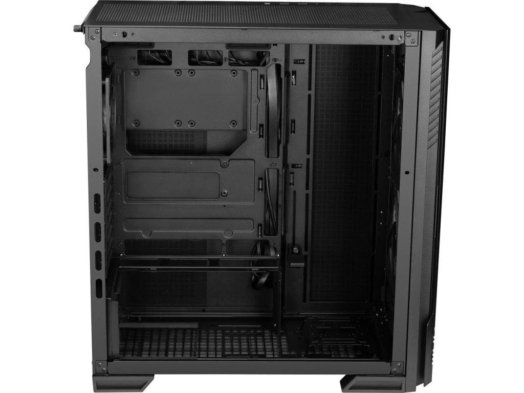 Kvalitní počítačová skříň formátu Middle Tower nabízí 4× 2,5", 1× 3,5" a 1× 2,5"/3,5" volné pozice pro uložení pevných nebo SSD disků. Skříň je vybavena průhlednou bočnicí a předním panelem. Předinstalovány jsou dva 160mm ventilátory s adresovatelným RGB podsvícením a jeden 120mm ventilátor bez podsvícení. Rychlou změnu podsvícení umožňuje tlačítko na horním panelu. Zde se také nachází dva porty USB 3.0, jeden port USB-C a kombinovaný port sluchátek a mikrofonu. Ve skříni je dostatek prostoru pro chladič CPU do výšky až 165 mm a grafickou kartu o délce až 400 mm. Důmyslné řešení umožňuje pohodlné umístění až 360 mm dlouhého výměníku vodního chlazení na přední, horní i boční straně. Potěší také přítomnost odnímatelných prachových filtrů. Skříň je dodávána bez zdroje.