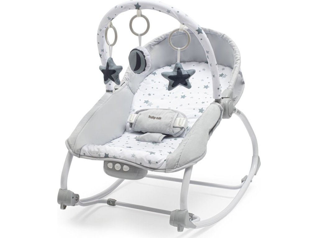 Dětské multifunkční lehátko Baby Mix poslouží vašemu dítěti od narození až do dosažení hmotnosti 18 kg. Pro úplně malá miminka jej lze použít jako houpací lehátko s melodií, světlem a vibrací. Jakmile vaše dítě vyroste, můžete toto lehátko změnit na křesílko. Lze jej aretovat i do pevné polohy vhodné na příklad ke krmení. Je vybaveno odnímatelnou hrazdou se třemi hračkami, nastavitelnou opěrkou zad a vibračním a zvukovým a světelným modulem, který zpříjemní chvíle vašemu dítěti.