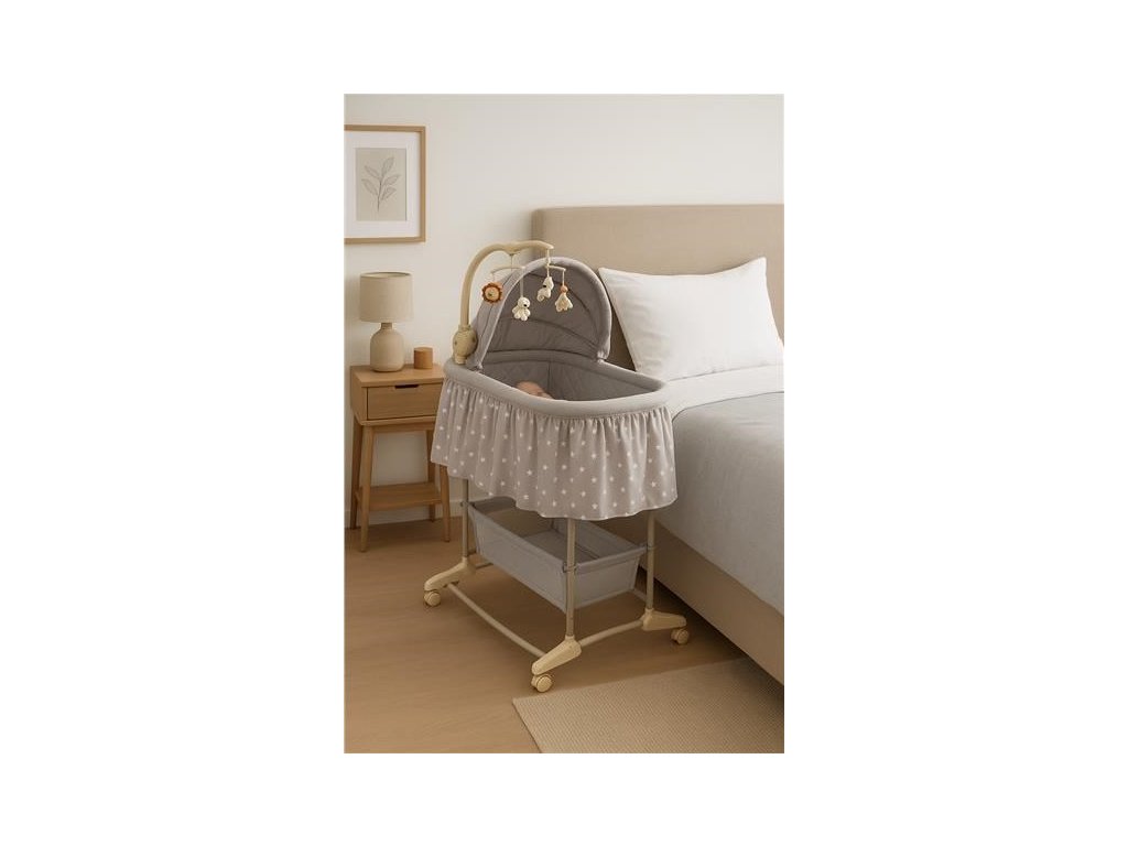 Multifunkční dětská kolébka New Baby je ideální volbou jak pro děti, tak pro rodiče, pro které je klíčová funkčnost a bezpečí. Výrobek slouží jako postýlka i kolébka. Její mobilita poskytuje obrovské pohodlí, protože dítě bude vždy v blízkosti svých rodičů. Praktický koš vám umožní mít vše potřebné na dosah ruky a včas reagovat na potřeby mrňouska, aniž byste se od něj museli vzdalovat. Potah kolébky je vyroben z prodyšného a příjemného na dotek materiálu, který lze snadno sundat a vyprat. Kolotoč s barevnými zvířátky je vybaven nočním světlem, hudebním modulem s 8 melodiemi a funkcí jemných vibrací s možností změny jejich intenzity. Je napájen 3 bateriemi AA LR6-1,5 V (nejsou součástí dodávky). Jednu ze stran postýlky lze rozepnout, což oceníte během každodenní a často i noční péči o Vaše děťátko.