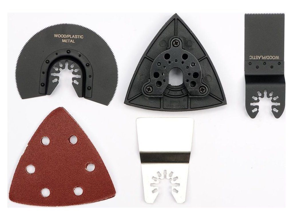 Nástroj umožňuje rychlou a snadnou výměnu příslušenství, které je součástí výrobku (segmentový pilový list 88 mm, pilový list na ponorné řezy 34 mm, škrabka 50mm, brusný nástavec trojúhelník, 2x brusné plátno trojúhelník).