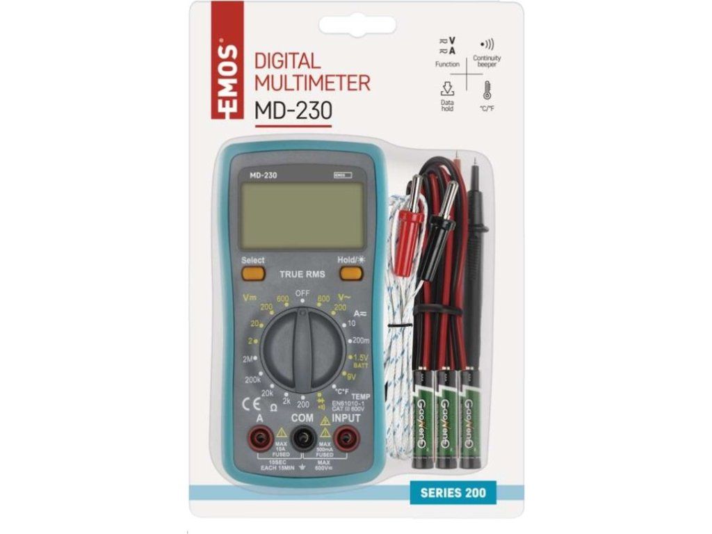 | Součást dodávky: | baterie, návod, měřicí hroty, teplotní sonda |