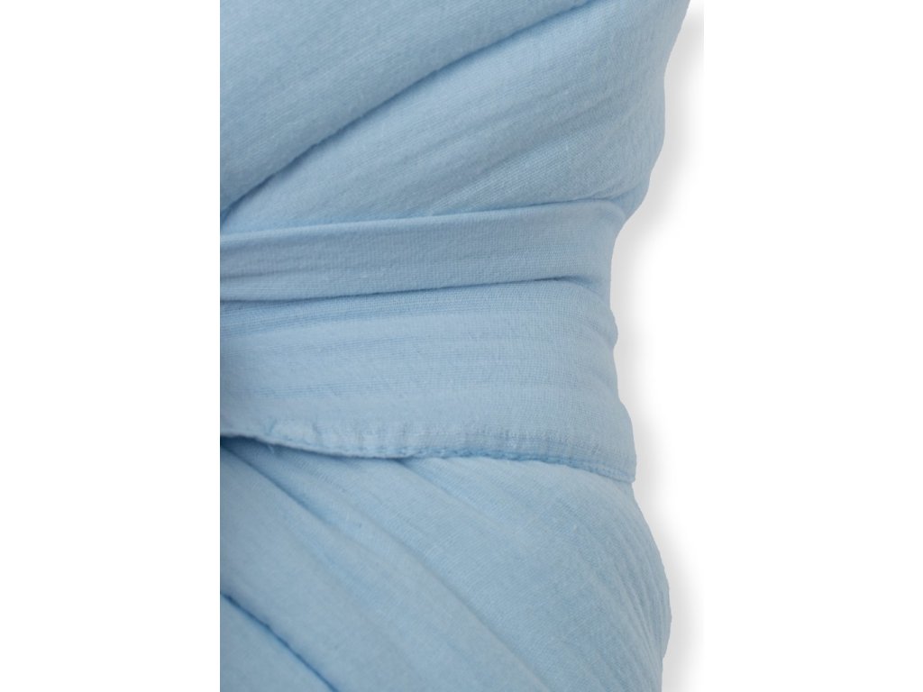 Mušelín je jedna z nejčistších, nejjednodušších a nejjemnějších tkanin na světě. A čím je tak vyjímečný ? Především jeho prodyšností. Lehká struktura umožňuje mušelínu „dýchat“ a zajišťuje dostatečnou cirkulaci vzduchu, čímž snižuje riziko přehřátí. Mušelín je velmi odolný a to tak, že bez problémů zvládá opakované praní a postupem času je ještě lehčí a jemnější.