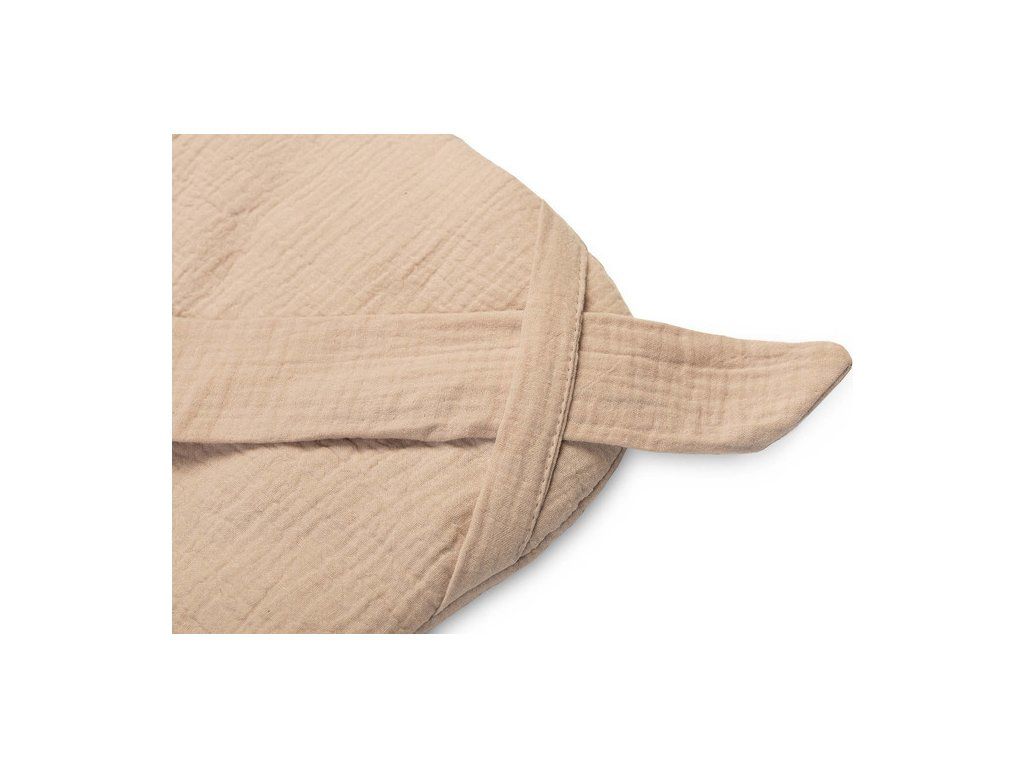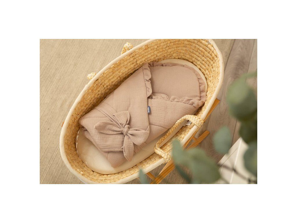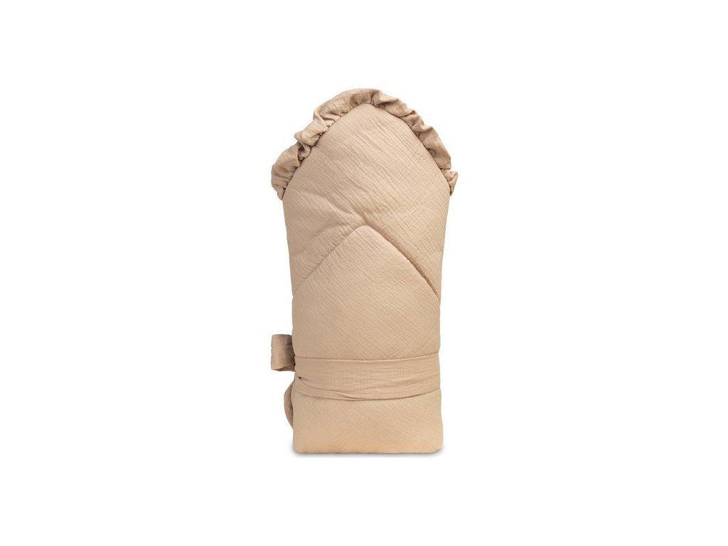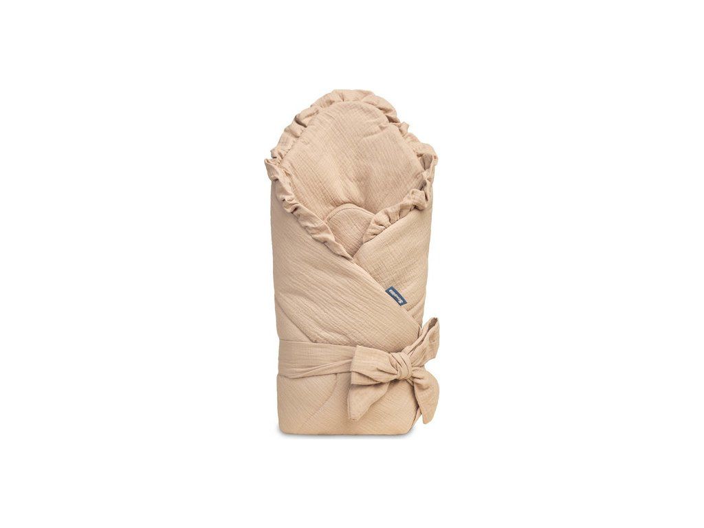 Oboustranný dětský roh byl vytvořen pro novorozence a kojence. Suchý zip umožňuje pohodlné držení dítěte při krmení a usínání. Po rozložení lze kužel s úspěchem použít jako peřinku do postýlky nebo kočárku. Dá se použít i jako podložka na hraní. Byl vyroben ze 100% bavlny. Zvenku i zevnitř má mušelín příjemný na dotek. Výplň kornoutu tvoří nadýchaná silikonová netkaná textilie.