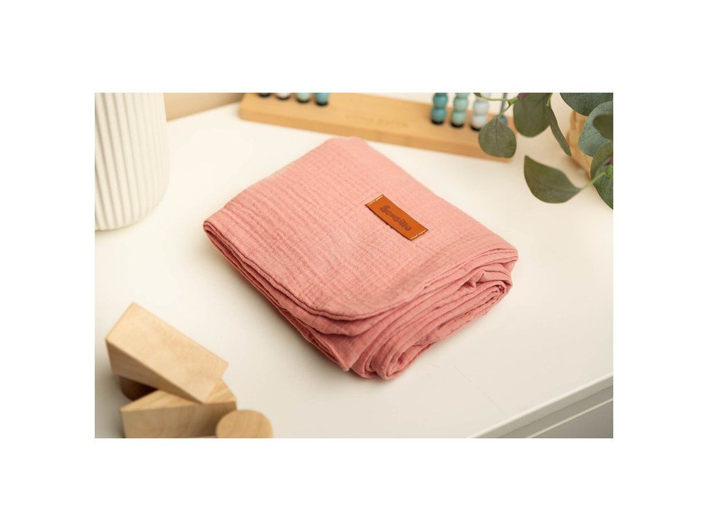 MUSLÍNOVÁ DEKA RETRO RŮŽOVÁ 75x100