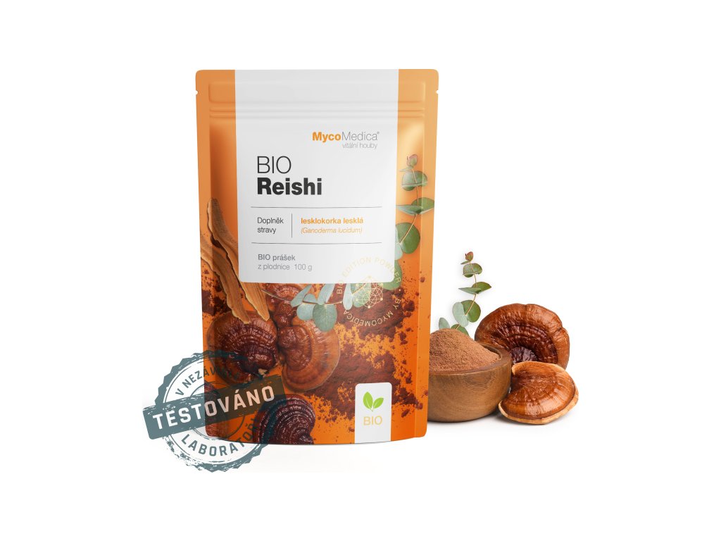 \nMycoMedica Reishi ve formě prášku (powder/biomasa), vyrábíme tak, že se usušená plodnice houby rozemele na velmi jemný prášek speciální metodou shellbroken, při které dojde k narušení chitinového obalu buňky a uvolnění bioaktivních látek. Oproti extraktu má tato forma jemnější působení.