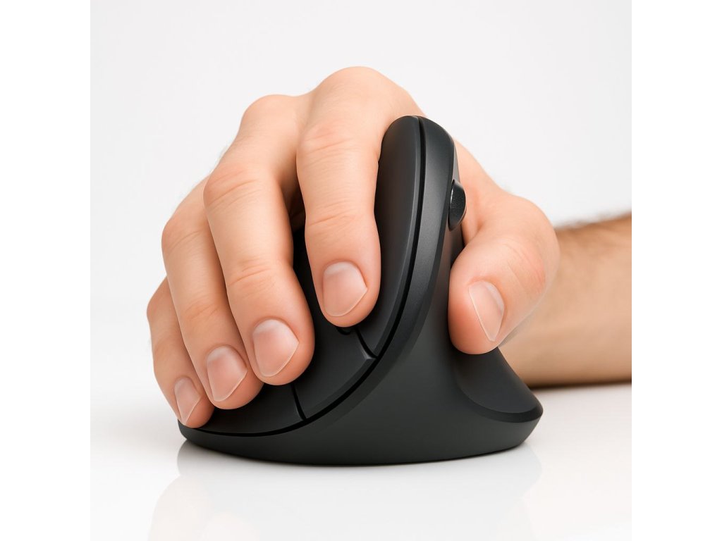 C-TECH VEM-12 je moderní bezdrátová vertikální myš navržená s důrazem na ergonomii, funkčnost a maximální pohodlí při každodenním používání. Je ideální volbou pro uživatele, kteří tráví dlouhé hodiny u počítače a chtějí předejít bolestem zápěstí či syndromu karpálního tunelu. Vertikální konstrukce přirozeně kopíruje polohu ruky v odpočinku, čímž výrazně snižuje napětí ve svalech a podporuje zdravější držení. Tvarované opěrky pro palec a prsty zajišťují jistý úchop bez zbytečného zatěžování zápěstí.