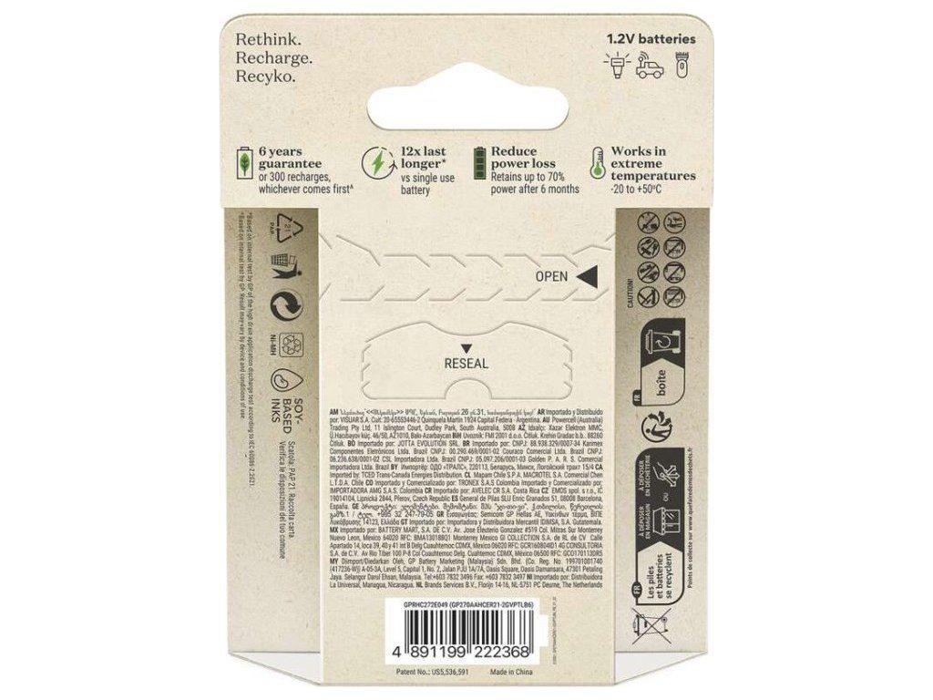 Nabíjecí baterie GP ReCyko 2600 AA (HR6), 6 ks