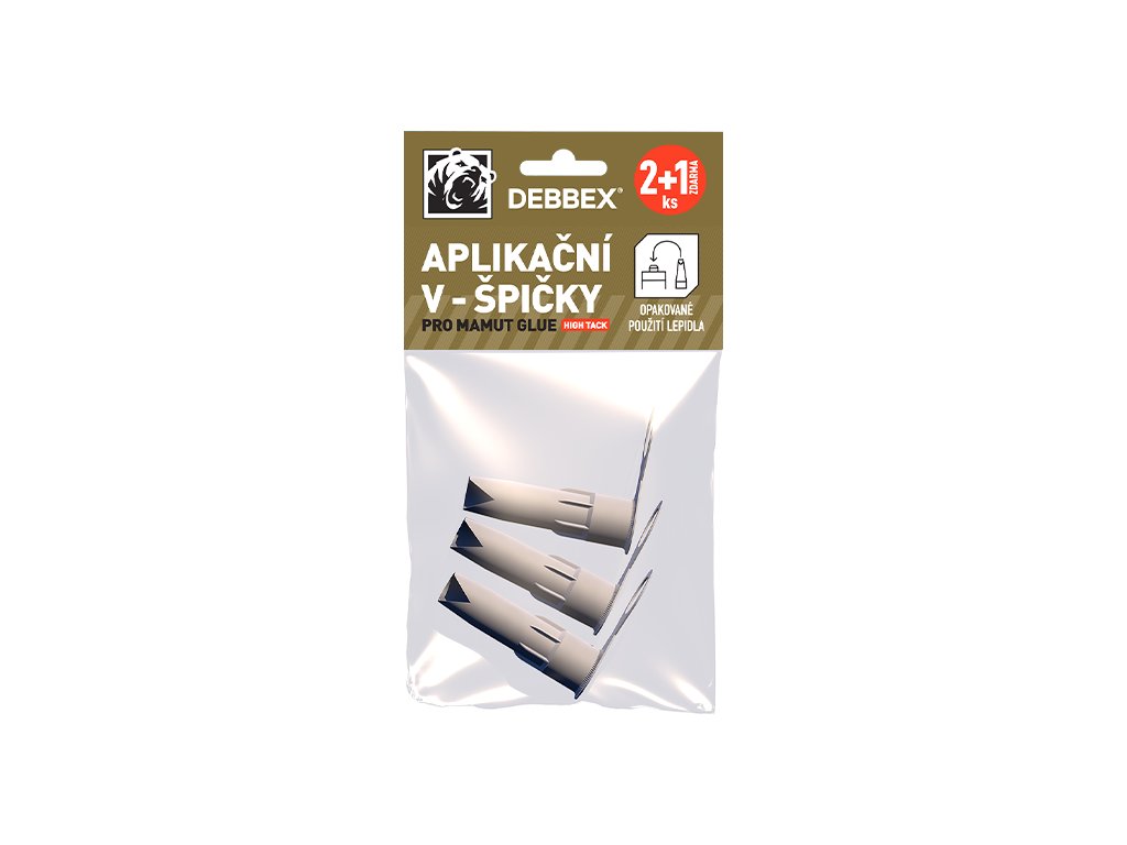 Náhradní aplikační V-špičky pro lepidla MAMUT GLUE zajišťují lepší přilnavost lepených předmětů díky tvaru „V“, který vzniká při aplikaci lepidla. Nově k dispozici v balení 2+1 ZDARMA.